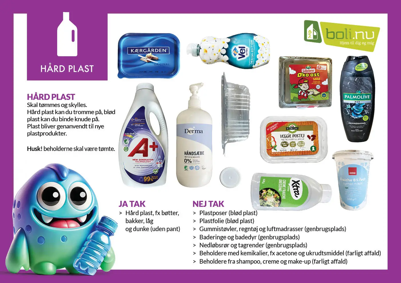 Plastdunke, -bøtter og mad- og drikkekartoner skal tømmes og skrabes for indhold, og låg skal tages af. Låget må gerne afleveres løst sammen med det andet plastaffald. Vi anbefaler en let skylning, så du undgår madrester i affaldet og på den måde minimerer risikoen for, at dit affald tiltrækker fluer og skadedyr. Poser rystes fri for krummer. Er poserne våde eller ’snaskede’, skal de lægges til restaffald.