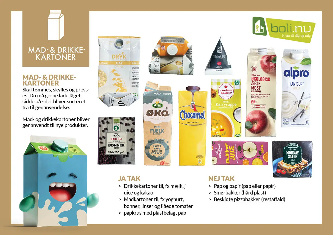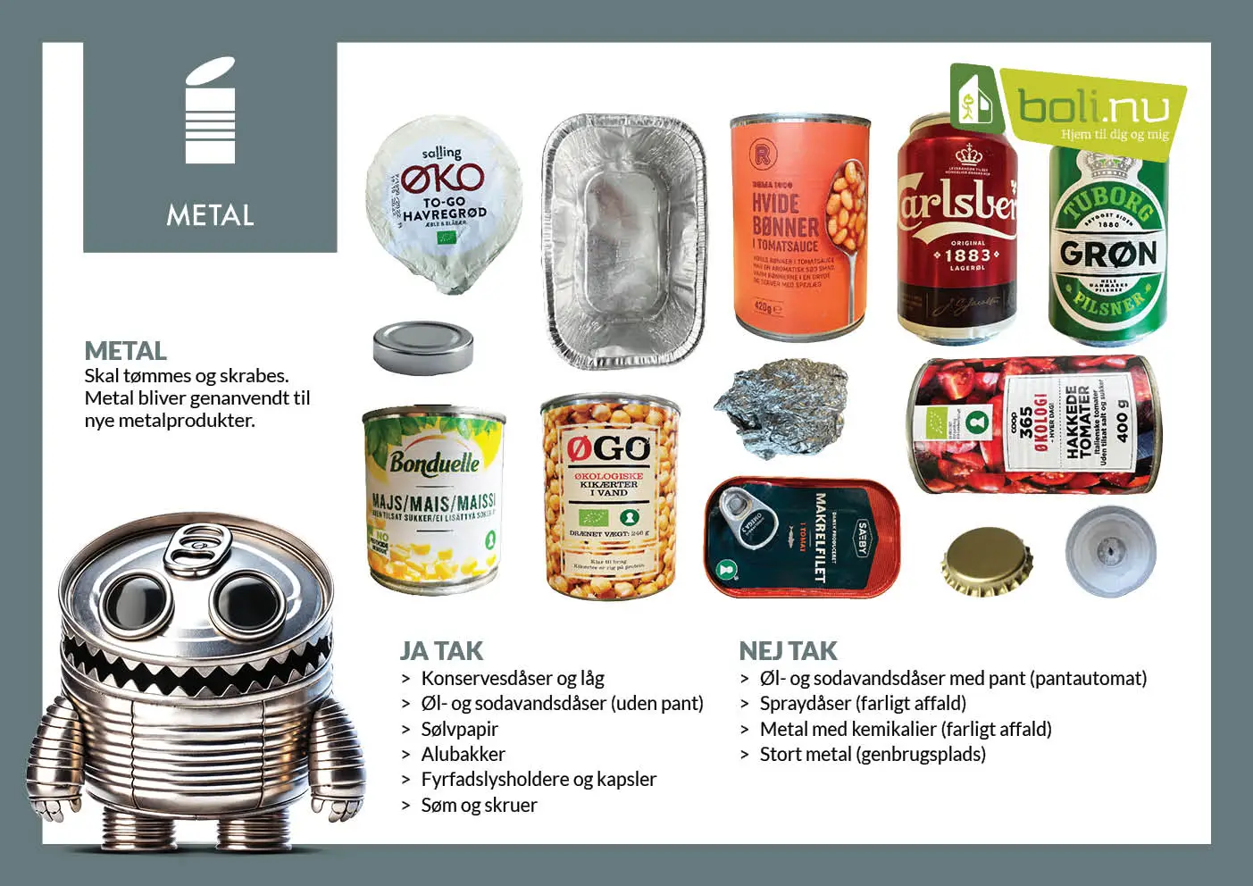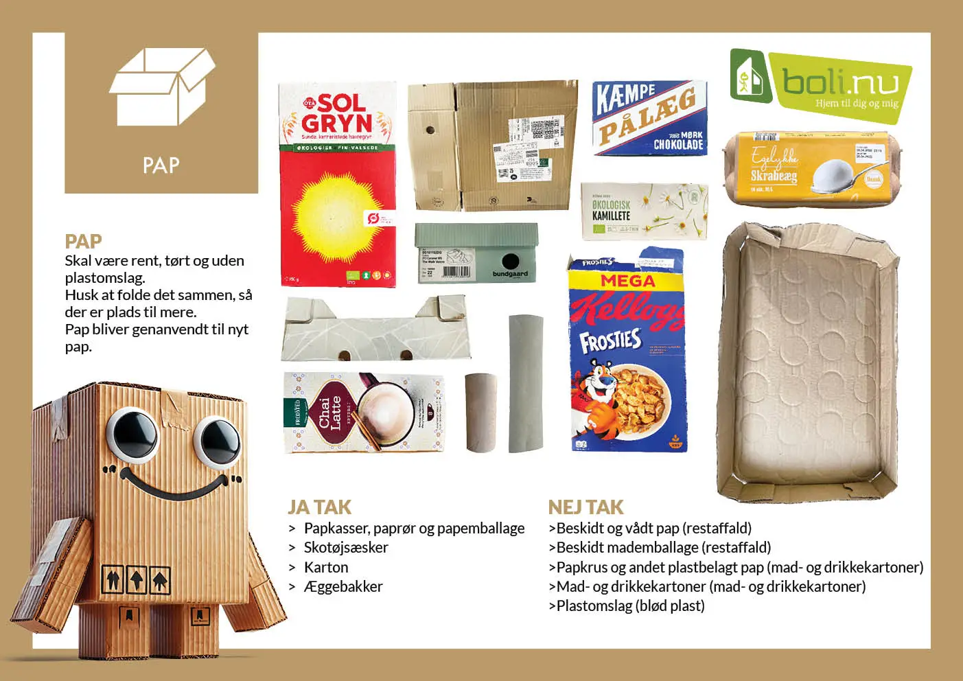 Madaffald, restaffald og tekstilaffald SKAL afleveres i plasticpose med knude. Glas, metal, plast, mad- og drikkekartoner MÅ afleveres i plasticpose uden knude. Pap og papir må IKKE afleveres i plasticpose.